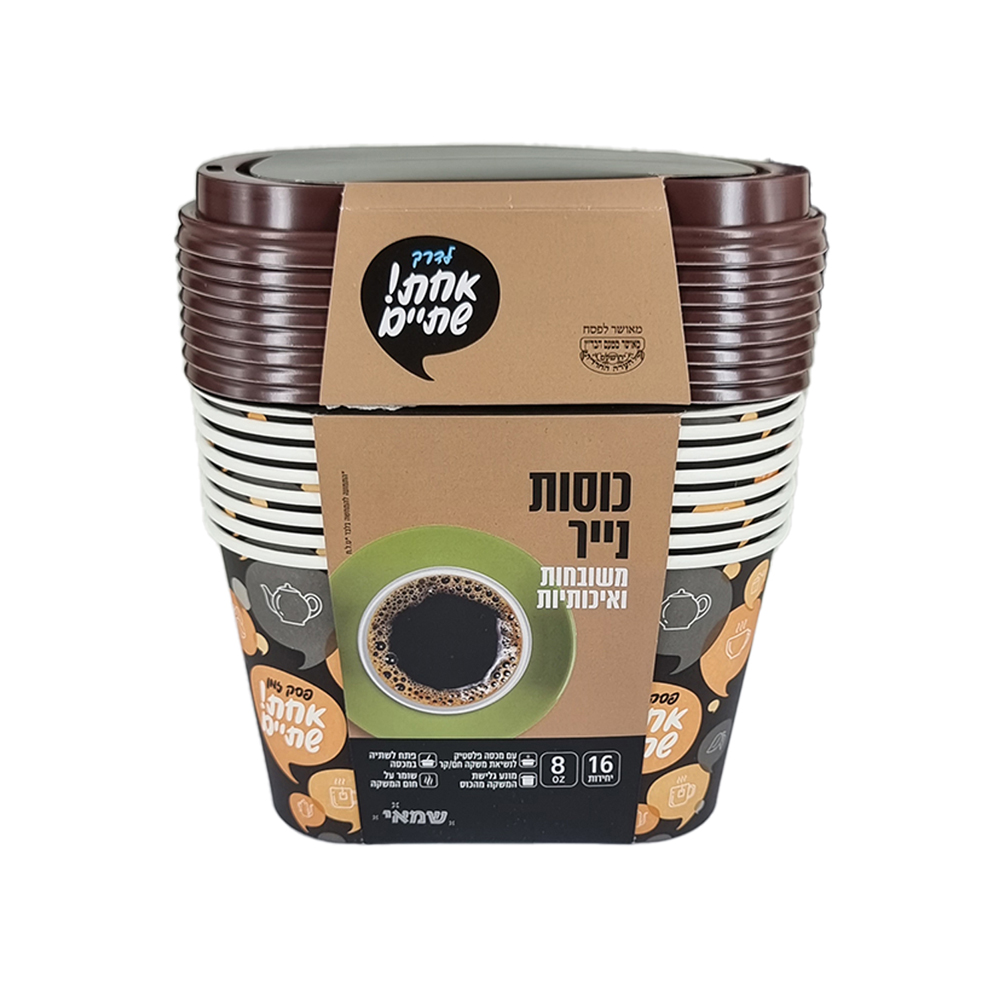 כוסות קרטון 8 OZ +מכסה ארוז 16 עדח