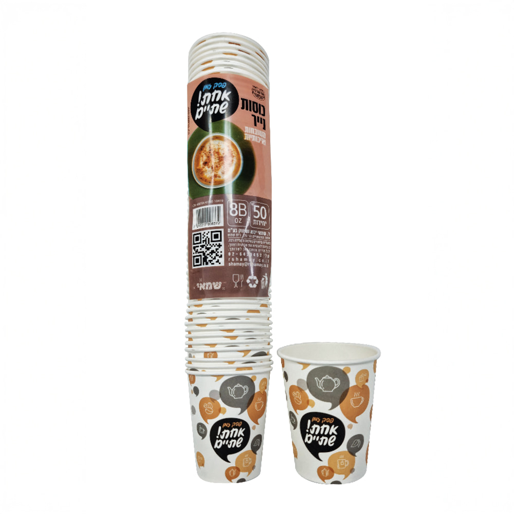 כוסות קרטון 8B איכותי 50 יחי’ כשלפ עד”ח